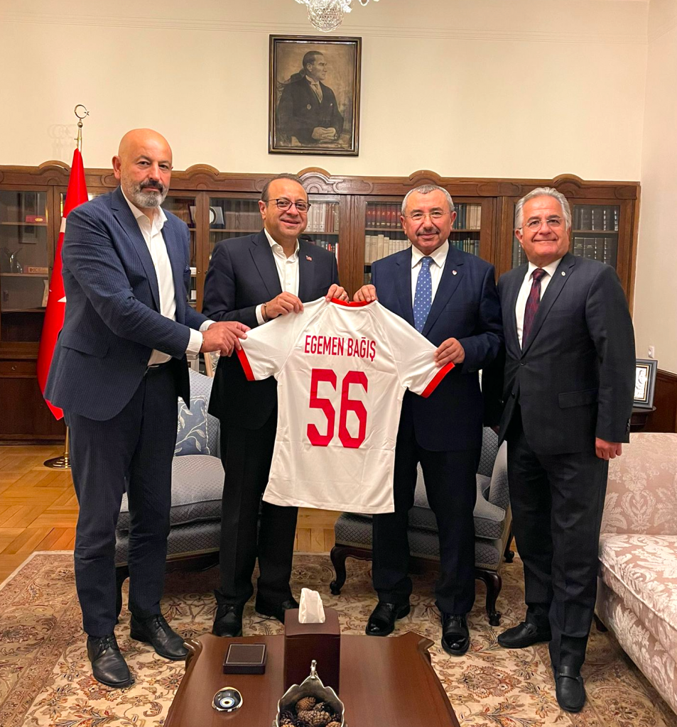 T.C. Prag Büyükelçisi Egemen Bağış, Çekya-Türkiye İşitme Engelliler Milli maçı için Çekya’da bulunan TFF heyetini evinde kabul etti. Ziyarette TFF Engelli Federasyonlarından Sorumlu Yönetim Kurulu Üyesi İsmail Erdem, Engelliler Koordinasyon Kurulu Başkanı Ömer Gürsoy ve Engelliler Koordinasyon Kurulu üyesi Alaaddin Nalcıoğlu yer aldı. Heyet, Bağış’a A Milli Takım forması takdim etti.