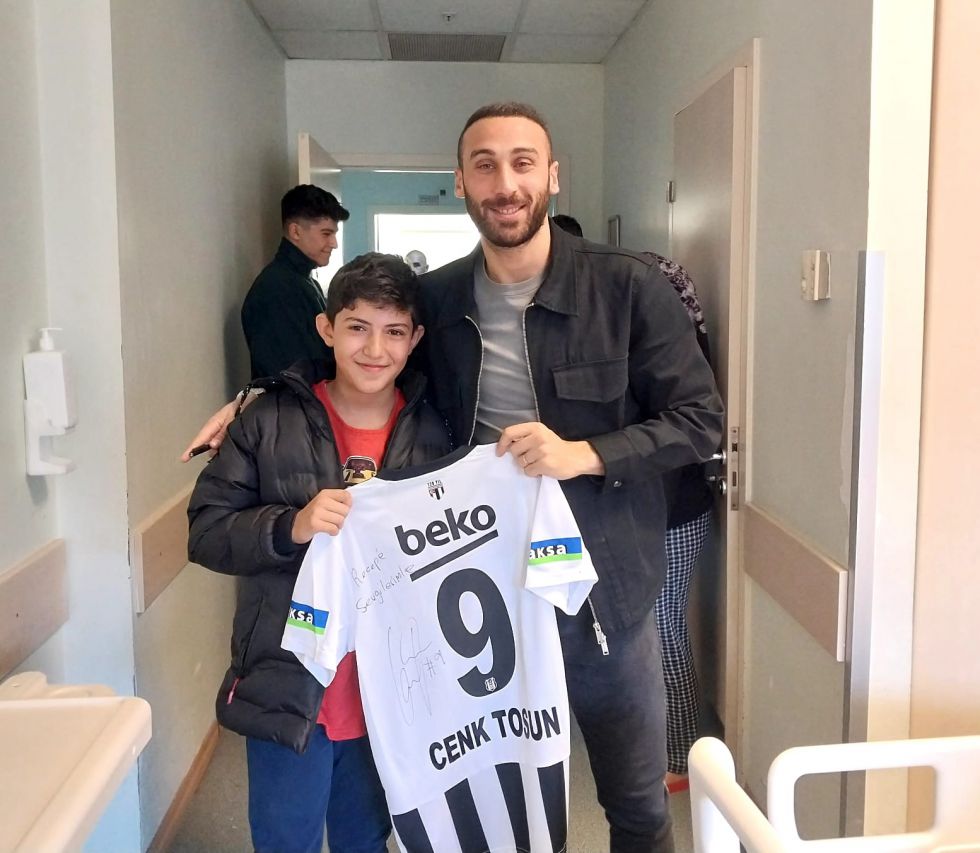 ANTALYA (TSA)-Beşiktaşlı Futbolcu Cenk Tosun; enkaz altından çıkarılan ve ailesini kaybeden, daha önce Cenk Tosun’a mesaj gönderen minik Cavit’i tedavi gördüğü Antalya’daki hastanede ziyaret etti. Milli futbolcu, minik Beşiktaş taraftarı Cavit’e söz verdiği üzere imzalı Beşiktaş forması hediye etti.