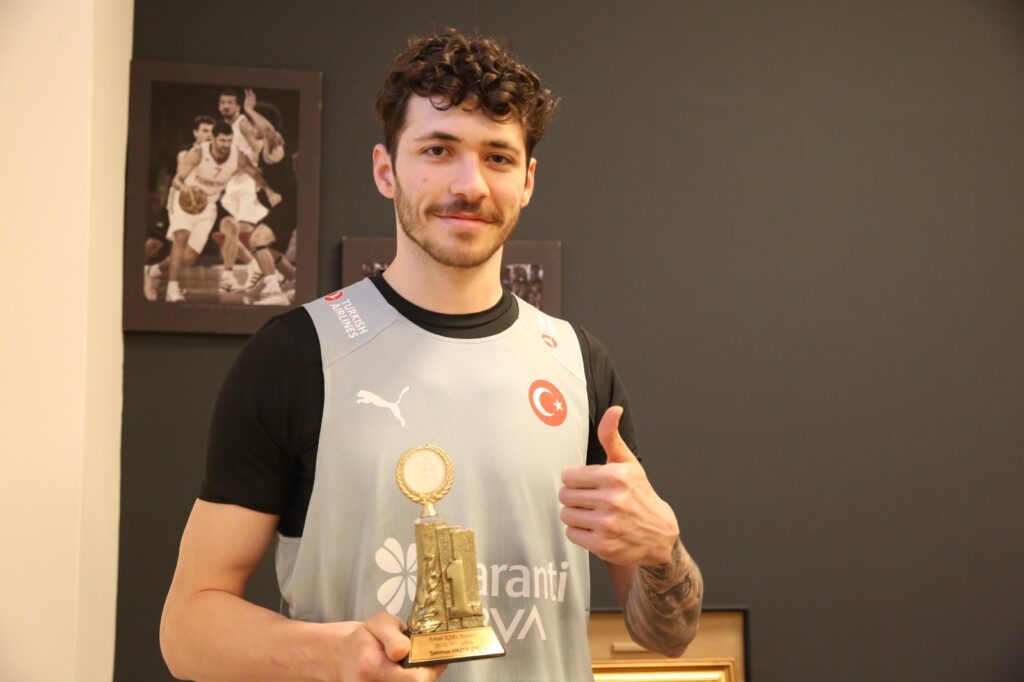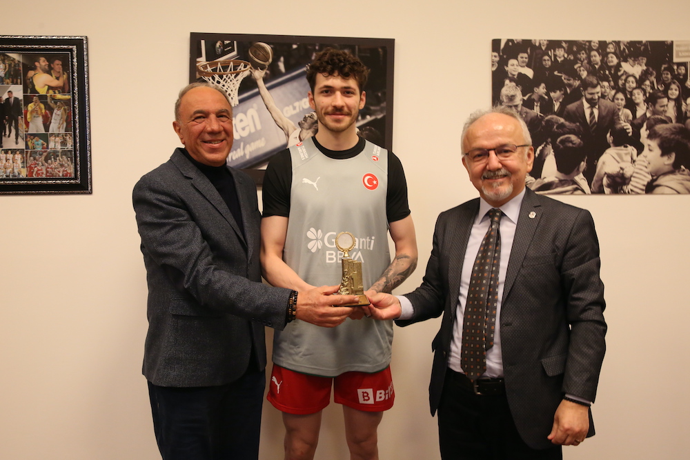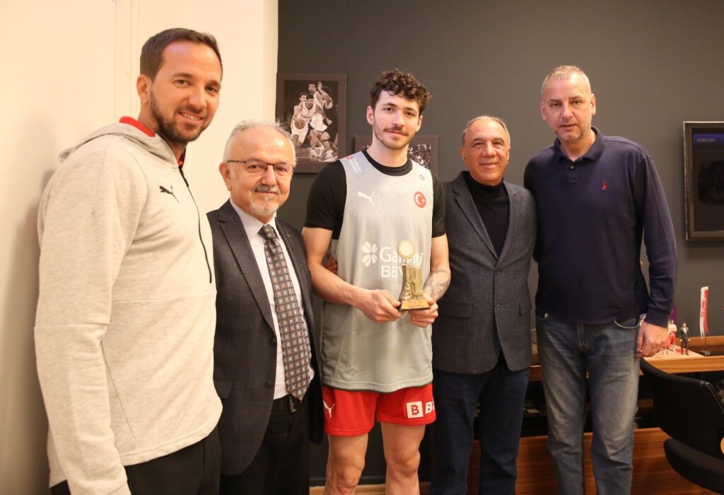 Basketbol Milli Takımlar Direktörü Haluk Yıldırım ile Milli Takım Menajeri Muratcan Güler de başarılı oyuncu Şehmus Hazer’i tebrik etti.