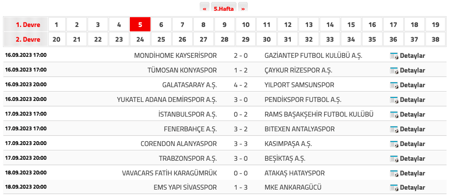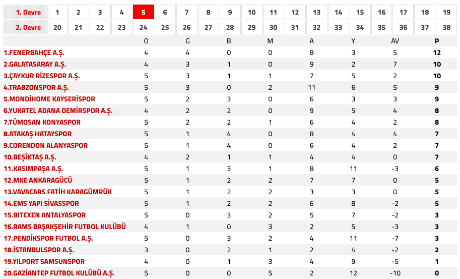 5. haftanın toplu sonuçları ve puan durumu şöyle: