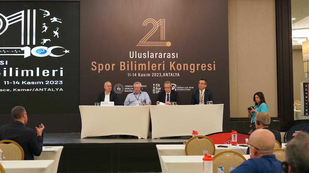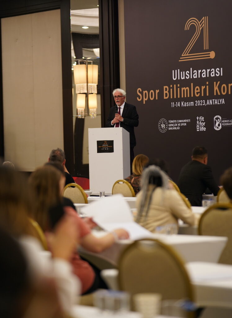 21. Uluslararası Spor Bilimleri Kongresi, 11-14 Kasım 2023 tarihlerinde Kemer/Antalya’da, Amara Premiere Palace’da “Fit for Life” temasıyla gerçekleştirildi. Cumhuriyet’in 100. Yıldönümüne denk gelen kongrede, Cumhuriyetin spor birikimine özel önem atfedildi. Spor bilimleri ile ilgili akademik ve idari çevrelerin büyük ilgi gösterdiği, resmi ve özel çok sayıda kurum ve kuruluşun destek verdiği kongreye 57 Üniversiteden toplam 180 bildiri sunulurken, ABD, Arjantin, Almanya, Avustralya, Belçika, Galler, İngiltere, İran, Kanada ve Kosova adresli 16 bildiri gönderildi. Çekya, İspanya, Güney Afrika, Belçika, ABD, Hong Kong, İngiltere ve Almanya’dan, alanlarında dünyanın en saygın isimlerinden olan 11 yabancı konuşmacı, yerli, yetkin davetli konuşmacılar ve katılımcıların nitelikli bildirileri kongreyi bir bilgi şölenine çevirdi. 22’si yabancı, 12’si yerli olmak üzer toplam 34 ana ya da davetli konuşma oturumu, 3 kurs ve iki güne yayılan akreditasyon çalıştayı gerçekleştirildi. Özellikle geçen yılki kongreden etkilenerek bu yıl beş doktora öğrencisiyle kongreye gelen Mainz Johannes Gutenberg Üniversitesinden Prof. Dr. Holger Preuss’un Türk doktora öğrencilerinin de katıldığı sekiz oturumluk doktora seminerler dizisi büyük yankı uyandırdı. Japonya’dan iki spor bilimleri profesörünün yabancı davetli bilim insanlarının konuşmalarını izlemek için kongreye gelmeleri de anlamlıydı.