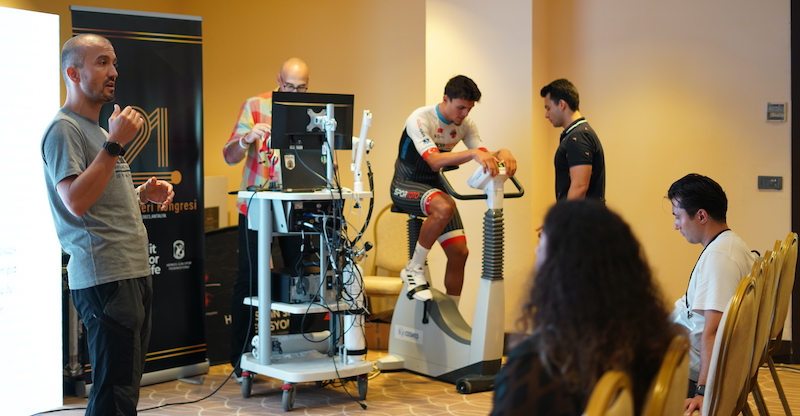 21. Spor Uluslararası Spor Bilimleri Kongresi sponsorlarından ELSA uydu sempozyumda, “Dayanıklılık Performansının Bileşenleri ve Değerlendirme Yöntemleri” teorik ve uygulamalı olarak aktarıldı. Dayanıklılık performansının bileşenleri olarak maksimal oksijen tüketimi Ege Üniversitesi SBF Öğr. Üyesi Prof. Dr. Özgür Özkaya, solunumsal eşik aynı üniversiteden Dr. Görkem Aybars Balcı, koşu ekonomisi Hacettepe Üniversitesi SBF Dekanı Prof. Dr. Tahir Hazır ve koşu ekonomisinde cinsiyet farklılığı aynı üniversiteden Prof. Dr. Ayşe Kin İşler tarafından anlatıldı. Ardından bisiklette uygulamaya geçilerek maksimal oksijen tüketimi ve solunumsal eşiğin nasıl belirlendiği gösterildi.