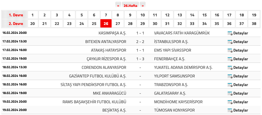 Günün diğer sonuçları, haftanın programı ve puan durumu şöyle: