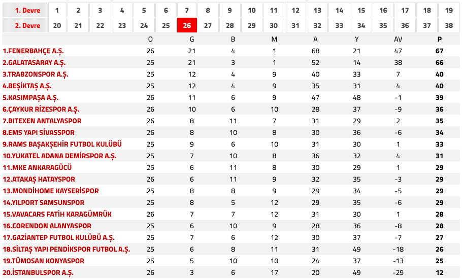 Bu sonuçla puanını 67’ye çıkartan Fenerbahçe, maç fazlasıyla liderlik koltuğuna oturdu. Son dört maçta üçüncü yenilgisini alan Çaykur Rizespor ise 36 puanda kaldı.