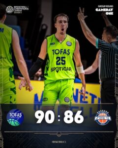 Bu sonuçla TOFAŞ, Basketbol Şampiyonlar Ligi’ne galibiyetle başladı ve D Grubu’ndaki ilk haftayı zirvede tamamladı. Bursa temsilcisi, ikinci maçında evinde taraftarı önünde sahaya çıkacak.