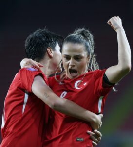 İZMİR (TSA)-Kadın A Millî Takımımız, UEFA Uluslar B Ligi Play-Out rövanşında Kosova’yı İzmir’de 3-0 mağlup ederek ligde kalmayı başardı. Priştine’de oynanan ilk maçı 4-0 kazanan Ay-Yıldızlılar, rövanşta da üstün bir performans sergiledi. Gürsel Aksel Stadı’ndaki karşılaşmada gollerimizi 22. dakikada Melike Pekel, 29. dakikada penaltıdan Kader Hançar ve 78. dakikada Busem Şeker kaydetti.