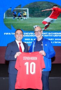 FIFA Yüksek Performans Sorumlusu Philippe Senderos, FIFA Yetenek Gelişim Programı’nın genel yapısı ve hedefleri hakkında bilgi verdi. FIFA Eğitmeni Stephen Morrow ise yetenek tespiti, yaşa bağlı gelişim özellikleri ve gelişim evreleri üzerine sunum yaparak antrenörlerin sorularını yanıtladı.