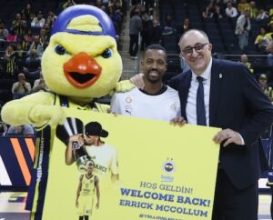 Karşılaşma öncesinde Fenerbahçe Beko’nun eski oyuncularından Errick McCollum’a plaket takdim edilirken, Karşıyaka maçında 2000 sayı barajını aşan Metecan Birsen’e de forma verildi. Derbi mücadelesini kulüp yönetim kurulu üyeleri de tribünden takip etti.