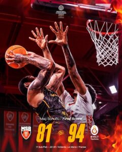 Galatasaray MCT Technic, FIBA Basketbol Şampiyonlar Ligi Son 16 Turu I Grubu 4. hafta maçında deplasmanda Le Mans Sarthe Basket’i 94-81 mağlup etti. Sarı-kırmızılı ekip bu sonuçla 7 puan ve averajla liderliğe yükselirken ikili averaj üstünlüğünü de ele geçirdi.