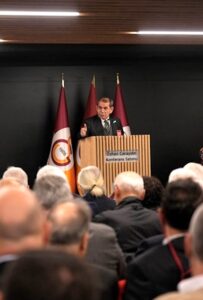 Başkan Dursun Aydın Özbek konuşmasına kısa süre önce hayatını kaybeden eski futbolcu Candemir için başsağlığı dileklerini ileterek başladı. Önümüzdeki günlerde oynanacak kritik maçlara dikkat çeken Özbek, ligde liderliğin sürdüğünü ve Şampiyonlar Ligi’nde önemli bir eşikte olunduğunu vurguladı. Juventus karşılaşmasının tarihi bir geceye dönüşeceğine inandığını belirten Özbek, taraftarlara hem Eyüpspor hem de Juventus maçlarında tam destek çağrısında bulundu. Ali Sami Yen’in Galatasaray için en büyük güç olduğunu ifade eden Özbek, kritik haftalara girildiğini ve camianın kenetlenmesinin büyük önem taşıdığını dile getirdi. Özbek, sportif başarı ile ekonomik istikrarın birlikte yürütülmesi gerektiğini vurguladı.