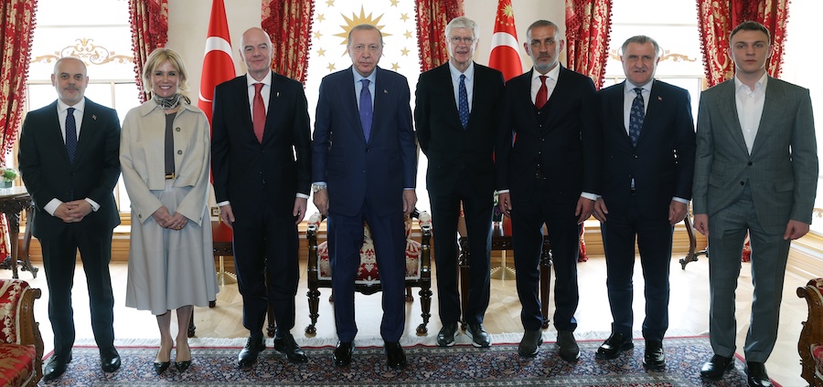 Cumhurbaşkanı Recep Tayyip Erdoğan, FIFA Arena projesinin Türkiye etabının açılışı için İstanbul’a gelen FIFA Başkanı Gianni Infantino’yu Dolmabahçe Çalışma Ofisi’nde kabul etti. Görüşmede Gençlik ve Spor Bakanı Osman Aşkın Bak ile TFF Başkanı İbrahim Ethem Hacıosmanoğlu da yer alırken, ziyaret FIFA-Türkiye futbol iş birliği açısından dikkat çekici mesajlar verdi.